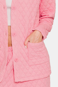 Zenana Quilted Button Up Long Sleeve Top and Pants Lounge Set