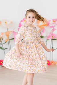 Pretty Peachy 3/4 Sleeve Pocket Twirl Dress