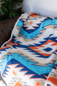 IN STOCK Plush and Fuzzy Blanket - Teal Mix Aztec