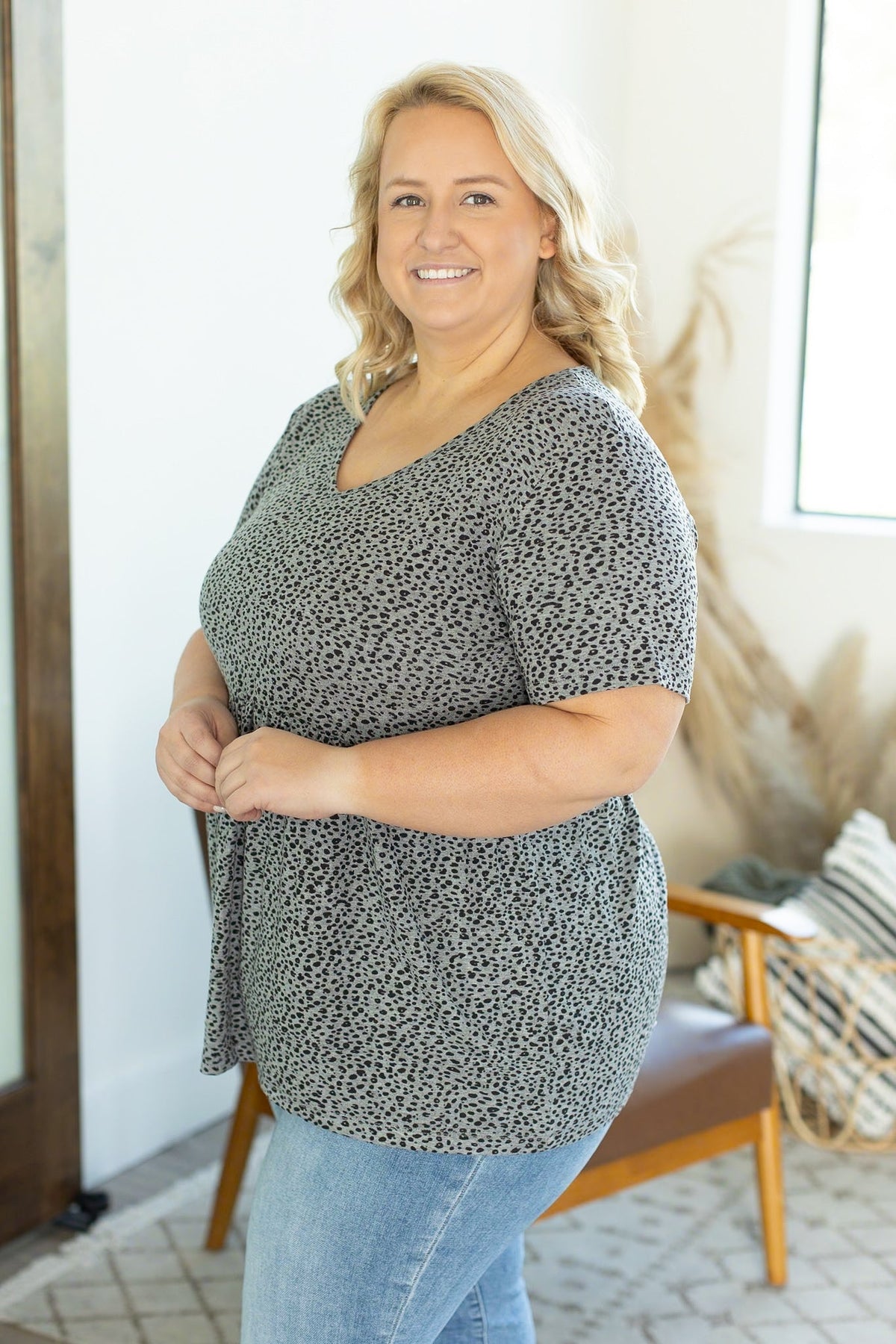 IN STOCK Sarah Ruffle Top - Grey Leopard